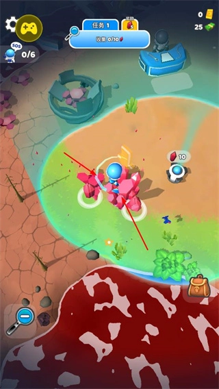 1、操控角色在星球表面挖掘资源,收集资源是发展的基础操作。