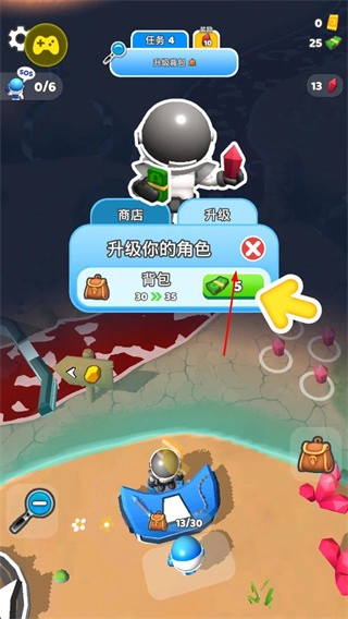 3、升级角色和背包,提升资源携带和挖掘效率。