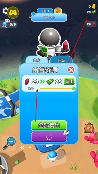 4、通过出售自己收集到的资源来获取钞票,这些钞票可用于进行升级操作以及解锁新的内容,之后继续开展挖掘、升级和交易等活动。