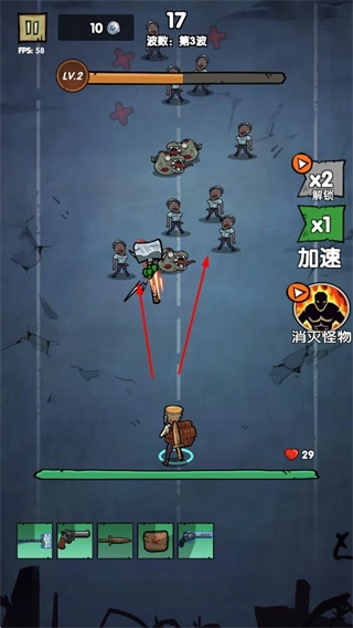 2、点击战斗按钮参与波次战斗,通过合成装备来攻击士兵、怪物等类型的敌人,以此抵御多轮进攻。