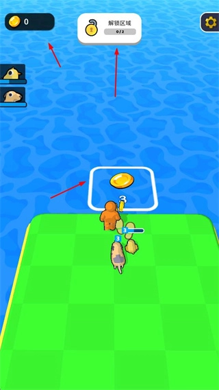 3、通过收集金币达成解锁区域的任务,以此扩大探索的范围,进而获取更多的资源与动物。