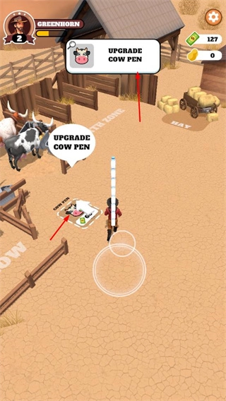 2、利用获取的现金升级农场设施,如UPGRADE COW PEN,提升农场的生产能力和规模。