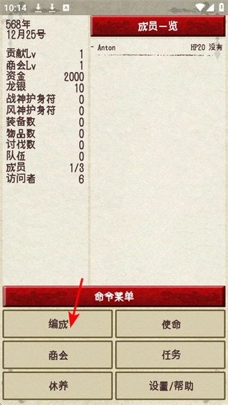 1、进入成员编成功能模块,点击编成按钮,即可进入成员编成界面,在此界面中可对队伍成员展开配置与管理操作,以此优化队伍的战斗效能或经营能力。