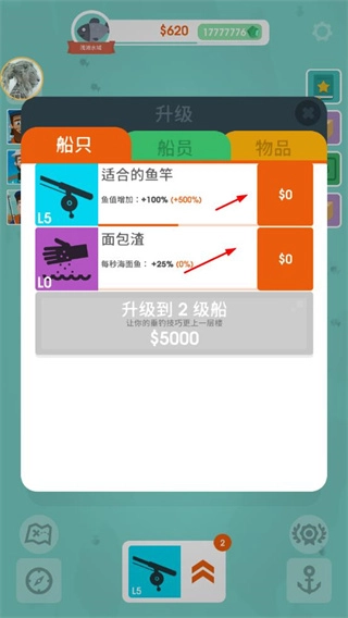 1、升级渔具装备,增加鱼的价值与海面鱼群数量,开启钓鱼经营的全新旅程。
