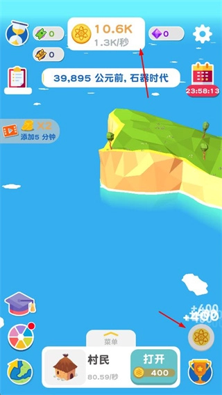 进化地球是一款放置点击类,玩家需要不断点击屏幕生产原子,再用原子建造建筑、工具、武器、岛屿、生物等,从石器时代起步,不断进化逐步走向现代化,界面简洁明了,逻辑清晰,整个过程展现文明从原始到发达的演变,带来轻松又富成就感的体验。