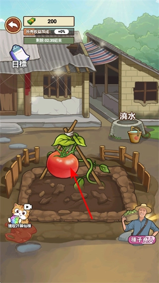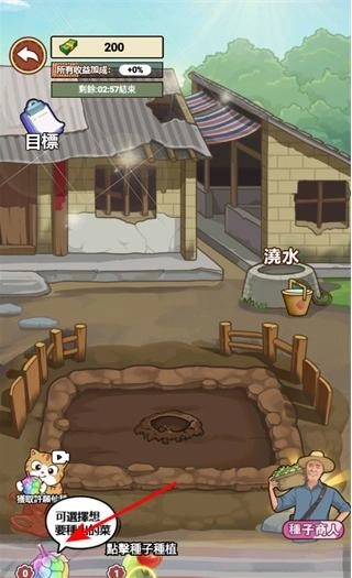 2、进行种植前的准备操作,在农场场景里,点击提示区域,打开种子选择界面,以便为种植作物做好准备。