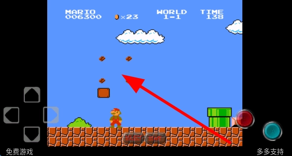 1、控制马里奥移动、跳跃并顶碎砖块,以此获取隐藏的道具或金币;这些道具能够帮助玩家顺利闯关,金币则可以积累分数,让游戏体验更加有趣。