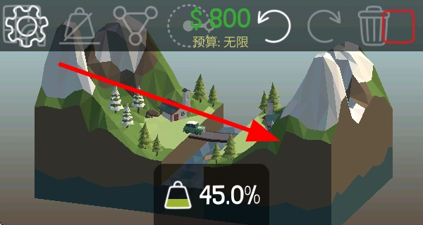 1、在建造界面,玩家使用各种工具和材料来设计桥梁,根据预算合理规划,打造出模拟车辆通行的桥梁。