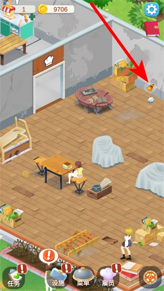 3、餐厅里有杂物,像角落的灰尘之类的,点击扫帚图标就能清理,这样能让餐厅环境更干净,还能帮助营造好的经营氛围,吸引更多顾客。