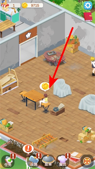 2、当有顾客进入餐厅时,需留意顾客身旁的金币标识,点击该标识即可获取金币。这是积累资金的关键途径,所获金币可用于后续的设施升级等操作。