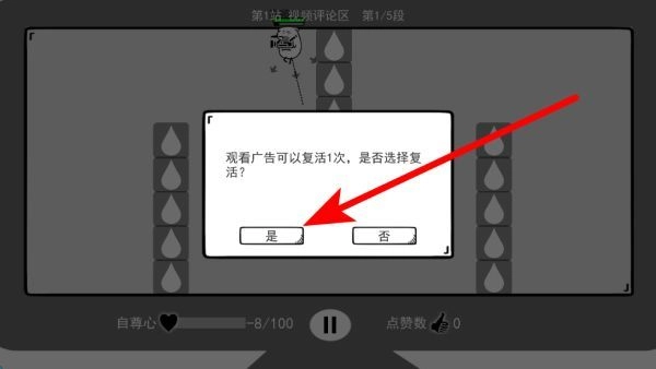 4、当出现失败提示时,若想继续,可选择观看广告来复活,这样能重新回到场景中,继续之前的互动操作,增加游玩的延续性。