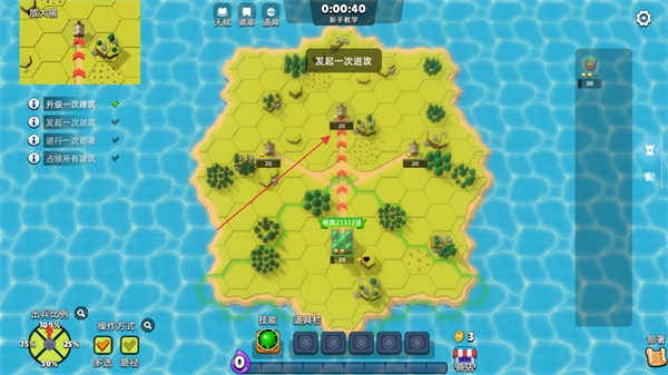 2、发起进攻,派遣史莱姆部队向敌方建筑推进。