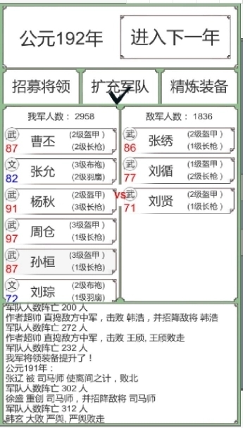 2.武将养成系统完备:玩家能够借助培养武将的方式提升自身实力,进而壮大自己的势力。