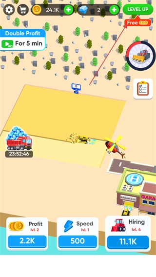 《挖掘大亨》是一款围绕矿业工地经营展开的模拟经营游戏。玩家将从规模不大的矿场或仅有的一台挖掘机开始,踏上创业之路。在这个过程中,你可以通过开采金矿、钻石等珍稀矿石,或者完成道路修建、场地挖掘等工程任务来积攒第一桶金。你需要密切关注市场变化,及时调整经营策略,把资金合理投入到更先进的挖掘设备和运输工具上,同时还要招募并培训专业员工,以此提高作业效率,一步步扩大自己的业务版图。