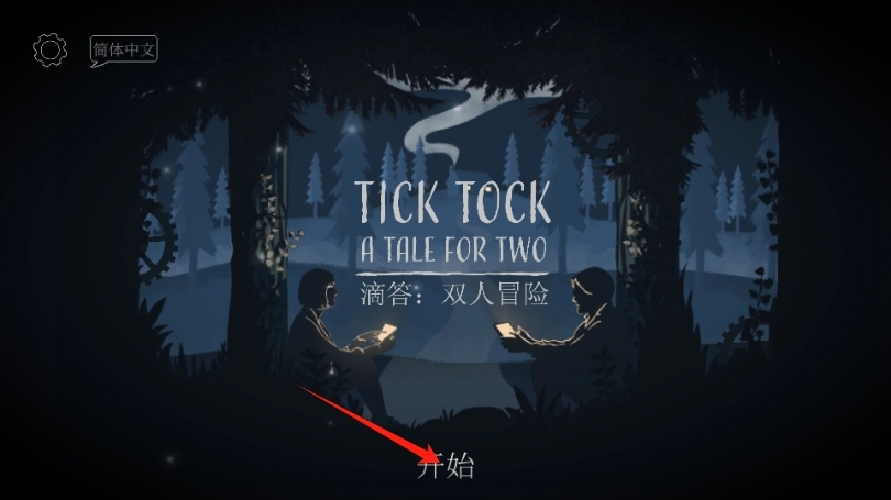 1、点击开始按钮进入滴答双人游戏,这是开启双人合作冒险的关键一步,需要和朋友一起参与。