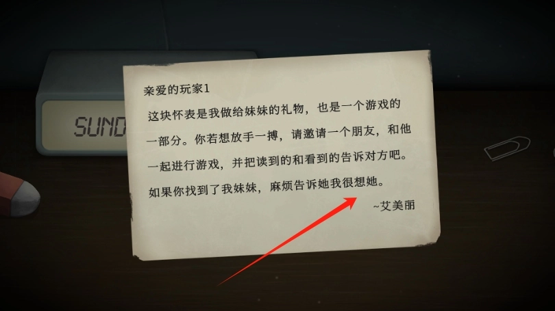 2、阅读信件内容,知晓游戏背景是协助艾美雨寻找妹妹,要和朋友分享所读到的信息,以此推进剧情。