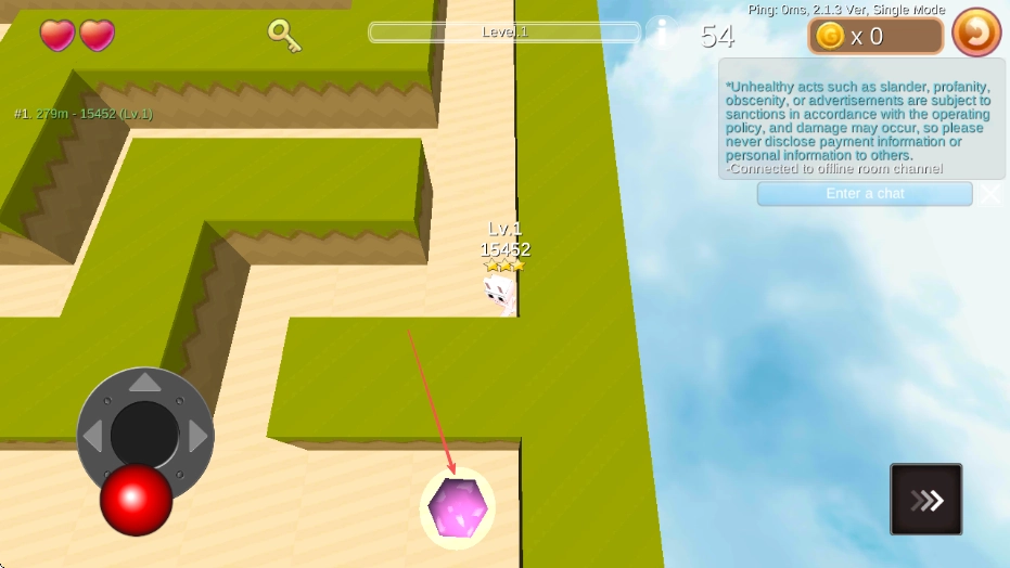 迷宫大作战是一款主打实时对战的迷宫竞技作品,以紧张刺激的multiplayer对抗为核心,为玩家带来独特的迷宫探索与策略博弈乐趣,玩家在其中将扮演勇敢的竞技角色,深入充满未知的迷宫场景,不仅要面对复杂多变的地形障碍,如死胡同、移动墙体等,还需与来自全球的其他玩家展开实时较量。