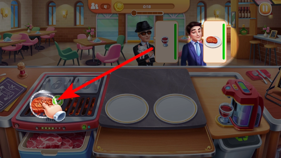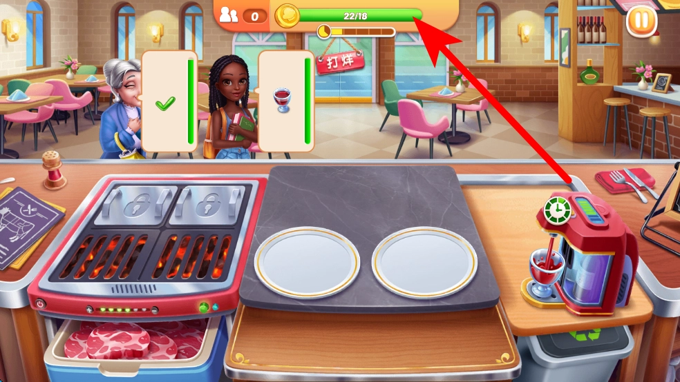 3、食物制作好后,及时将其递给对应的顾客,满足顾客的需求,这样能获得顾客的认可,同时获取金币奖励。