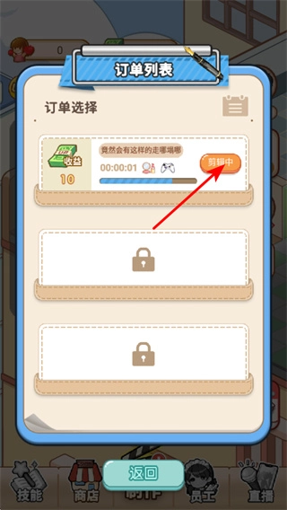 1、在游戏里点击带有完成标识的任务图标,就能进入订单列表界面,这是领取任务收益、推动业务进程的关键操作。