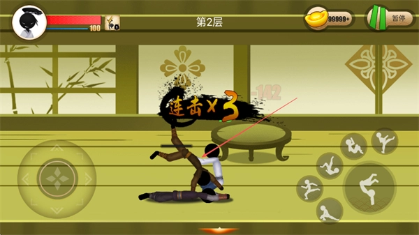 2、连续攻击敌人触发连击×3,造成高额伤害如-142,快速消灭对手。