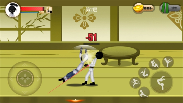 搭配古风音效与场景配乐,格斗时的拳脚碰撞声、兵刃交锋声极具代入感,再加上火柴人灵动的战斗姿态,营造出热血又纯粹的江湖格斗氛围。