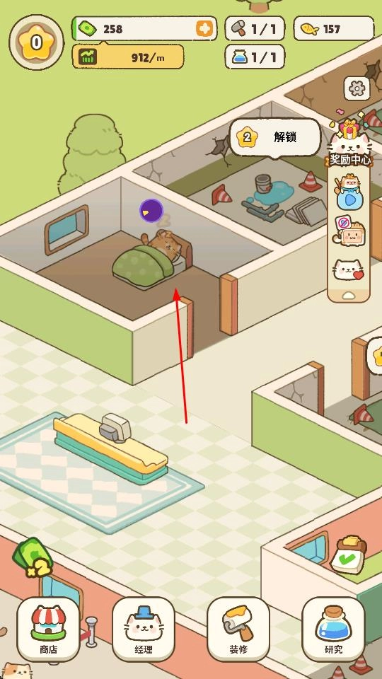 3、旅馆装饰扩展升级:可使用经营收益解锁多样装饰与设施,从可爱的墙纸、地毯到实用的猫爬架、自动喂食器,既能美化旅馆环境,又能提升服务能力,逐步扩展旅馆规模。