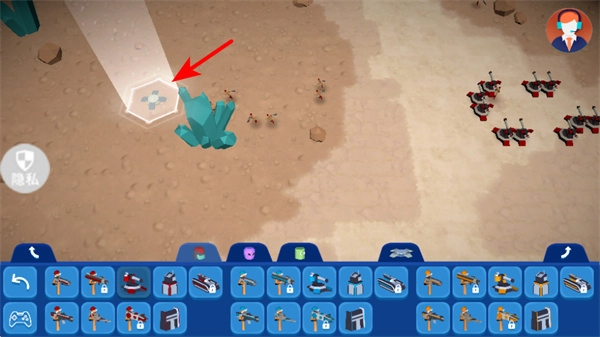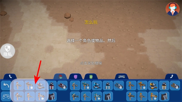 1、点击底部栏里像红色箭头所指飞船那样的角色/物品图标,这是挑选作战单位的重要步骤,选好之后才能把它们部署到战场上。