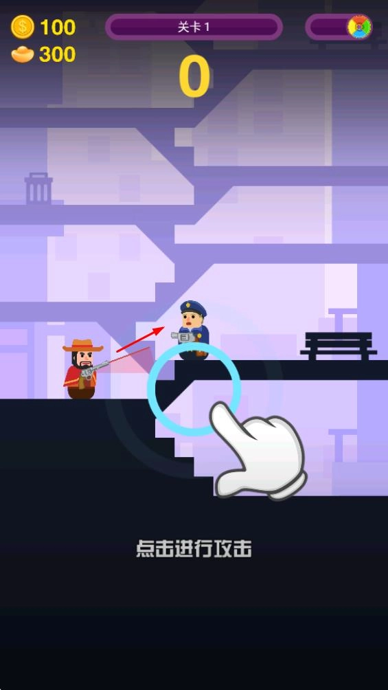 1、调整角度精准射击:进入关卡后先观察场景内敌人的位置,再通过触屏滑动调整武器射击角度,确认角度合适后触发射击,若未命中则重新调整,反复操作直至消灭当前敌人。