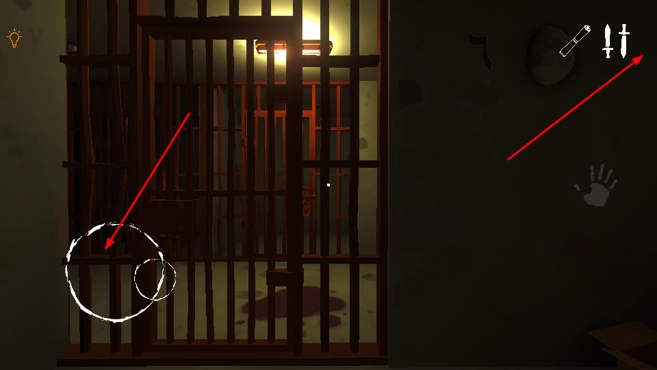 2、在监狱场景中,利用界面右上角显示的武器如匕首、长剑,应对随时可能出现的恐怖小丑,同时留意场景中的线索、道具,助力逃生。