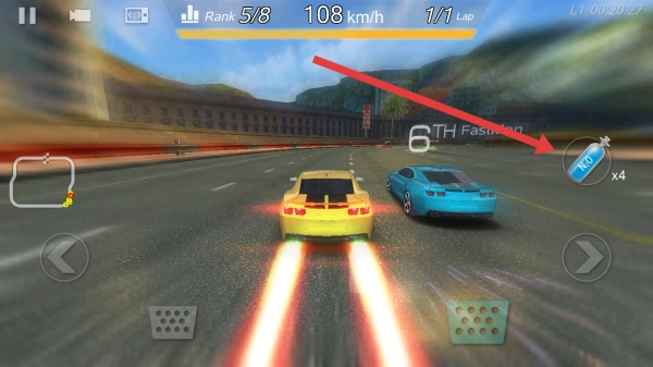 2、在行驶中需要拾取右侧N₂O道具,点击图标可以释放氮气,借助短时间加速超越前方的车辆。