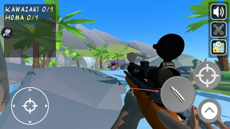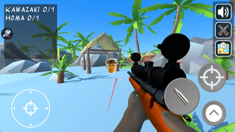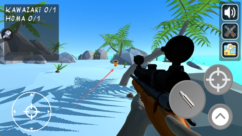 2、发现目标后点击屏幕右下方类似子弹的按钮开枪射击,若要调整射击方向可滑动屏幕来控制瞄准方向。