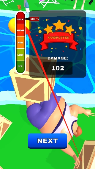 2、被破坏的物品数量有所增加,偶尔会遇到下方设有泳池的场景,人物坠落时会被泳池承接住,随后继续进行破坏动作。