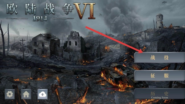 1、进入欧陆战争VI-1914的主界面后,点击战役选项,即可进入战役选择页面,开启特定战争剧情的体验。