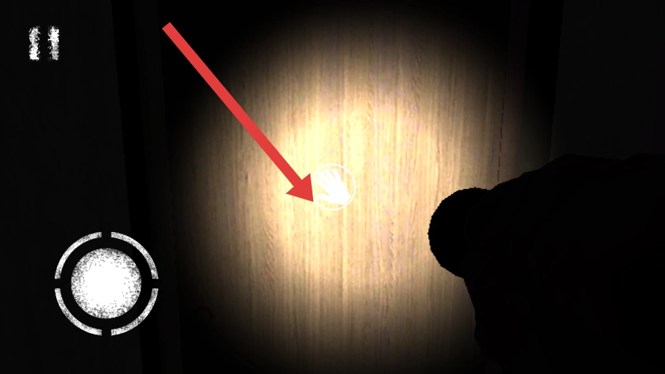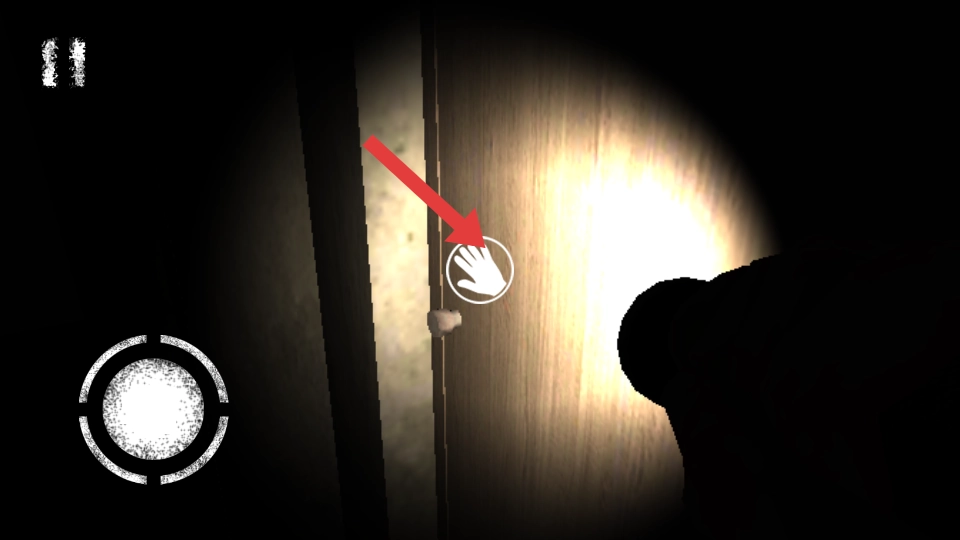 2、当发现带有手型的标识的木门的时候,靠近并点击交互,尝试开启新的门以进入新的区域。
