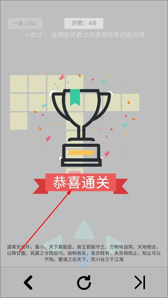 3、成功走完所有白色方块,达成步数要求,即可触发恭喜通关,解锁新关卡,延续营救冒险。