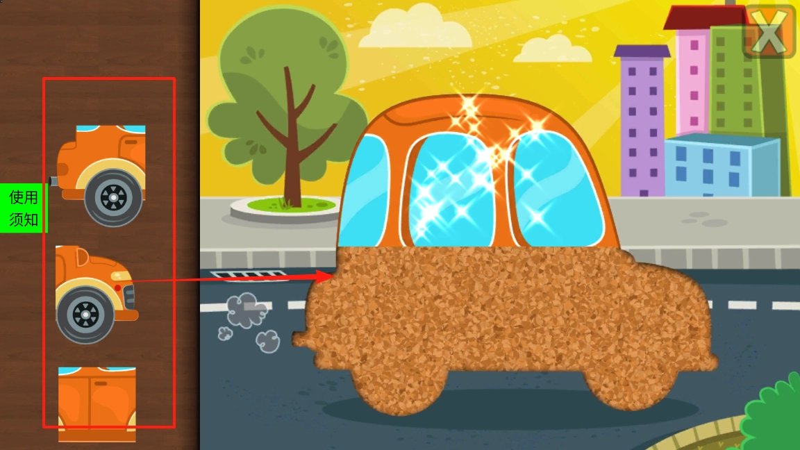 2、进入拼图关卡后,左侧会呈现完整的汽车模型,右侧则分布着汽车形状的拼图碎片。你需要仔细观察这些碎片的轮廓特征以及它们所处的位置,然后拖动左侧的汽车模型到对应的碎片区域,以此完成拼图的基础拼接步骤,这个过程能够有效锻炼你的空间匹配能力。