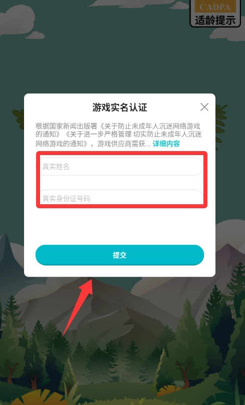 2、填写真实姓名和身份证号码并提交。