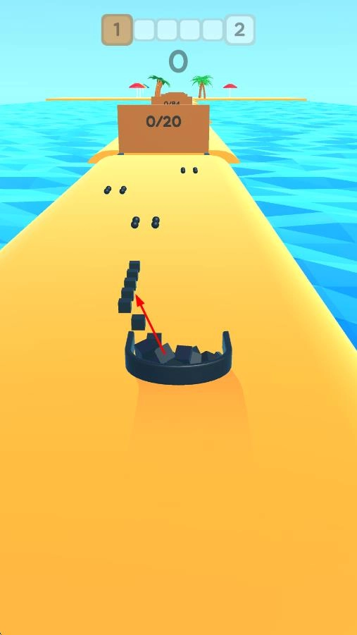 1、操控容器收集黑色方块,朝着【0/20】的目标逐步积累,注意别让方块掉落。