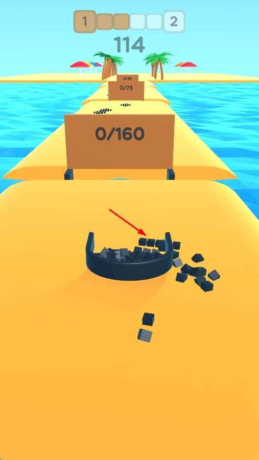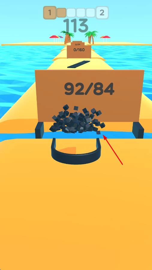 3、面对新的【0/160】目标,继续通过操控容器来收集黑色方块,要留意确保方块始终处于容器内部,以高效地积累数量。