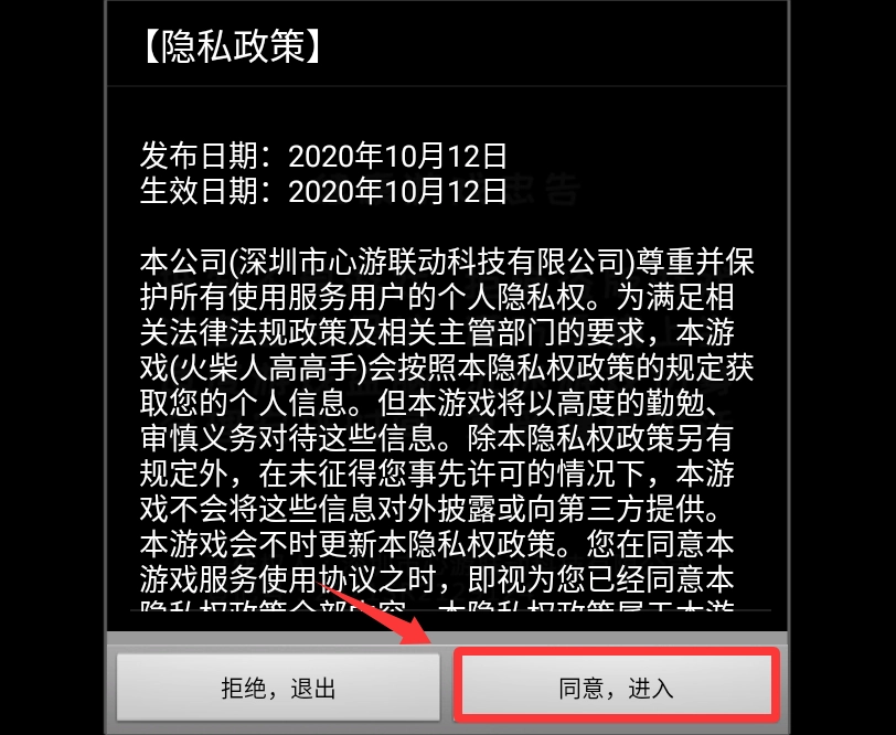 1、点击隐私政策的同意并进入。