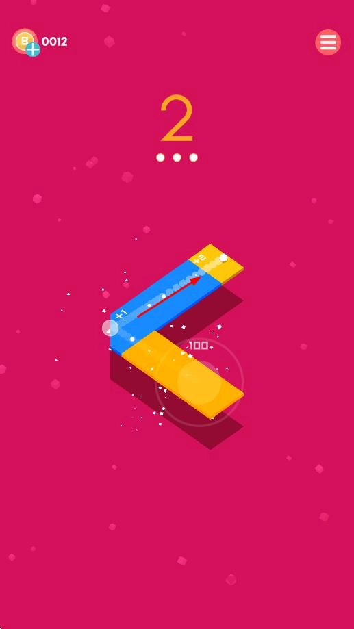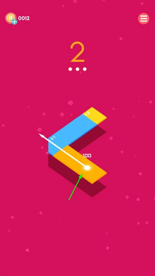 1、第2关时-观察箭头指引-操控光点沿蓝黄板块移动-拾取【+7】增益道具。
