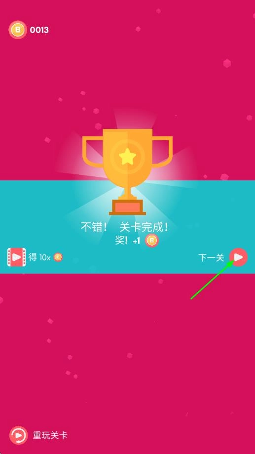 3、关卡完成后-点击右侧【下一关】箭头-开启新挑战-也可选择【重玩关卡】复刷。