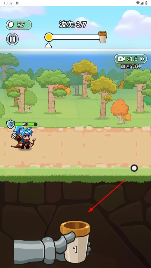 1、波次【3/7】阶段,需留意地面机械臂递出的杯子,拾取击败怪兽后掉落的小球,并利用道具辅助角色战斗。
