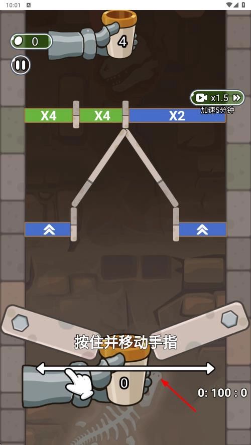 2、进入道具界面后,按住标有【0】的杯子进行左右拖动,参照【X4】【X2】的区域范围,规划好白球的下落轨迹。