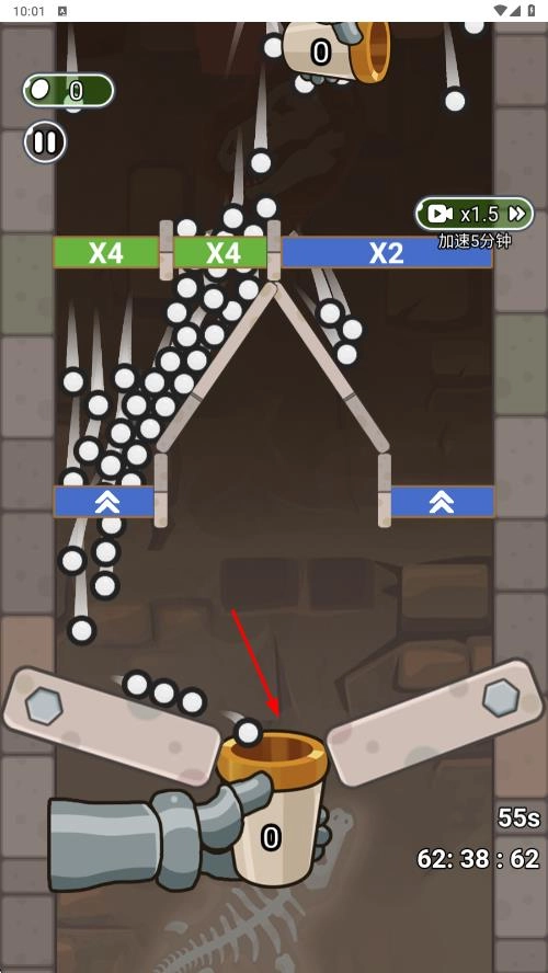 3、释放白球后,操控机械臂上的杯子进行承接,借助轨道引导白球经过倍率区实现数量倍增,再将其高效收纳入杯内。