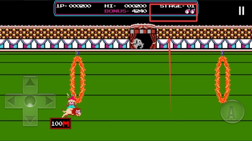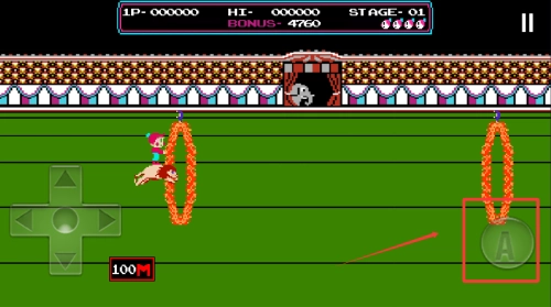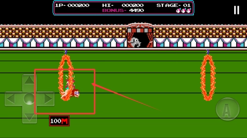 1、操控角色助跑,在合适时机点击“A”键起跳,穿过火圈完成跳跃动作。