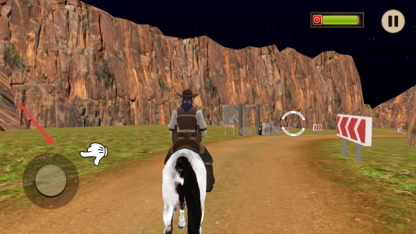 3、骑马时用左侧虚拟摇杆控方向,避障碍、沿路径前行,完成冒险任务,解锁新内容。