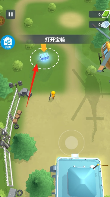 1、游戏启动后,操控角色移动到带有【打开宝箱】提示的红箭头指向位置,点击开启宝箱以获取资源。