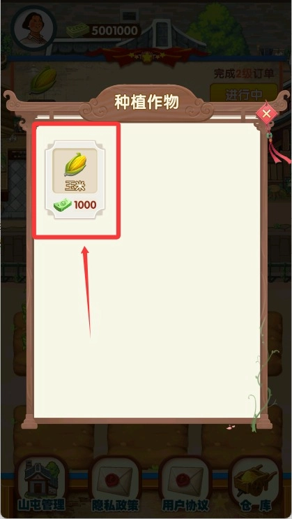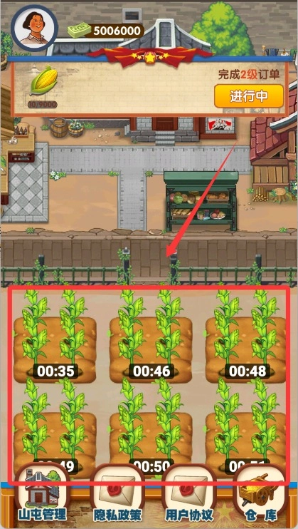 4、等级系统与土地扩张双重增长路径并行,随着等级提升可购买更高级种子、解锁新的地块,借助工具和道具加速作物成长,让农场规模不断壮大。