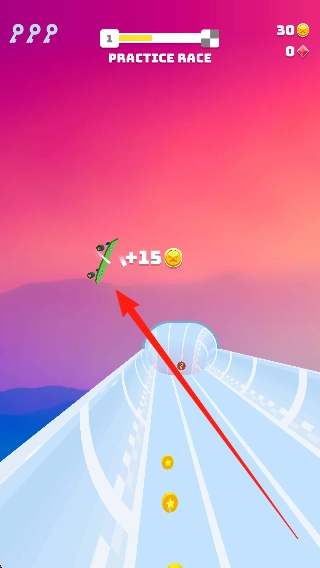 2、精准把握起跳时机与空中姿态,巧妙利用坡道加速,通过收集特殊道具获得临时无敌,预判关卡难点提前调整策略,让玩家沉浸在色彩与速度的碰撞中。